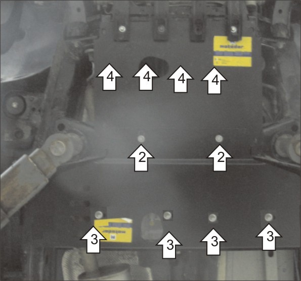 Защита картера двигателя Motodor имеет полимерное порошковое покрытие, позволяющее в огромной степени противостоять агрессивной среде. В комплекте находиться оцинкованный крепеж. Покрытие предохраняет резьбовые соединения от ржавчины, что облегчает демонтаж защиты картера двигателя и после длительной эксплуатации. Защита картера двигателя Motodor устанавливается в штатные места без доработки кузова.