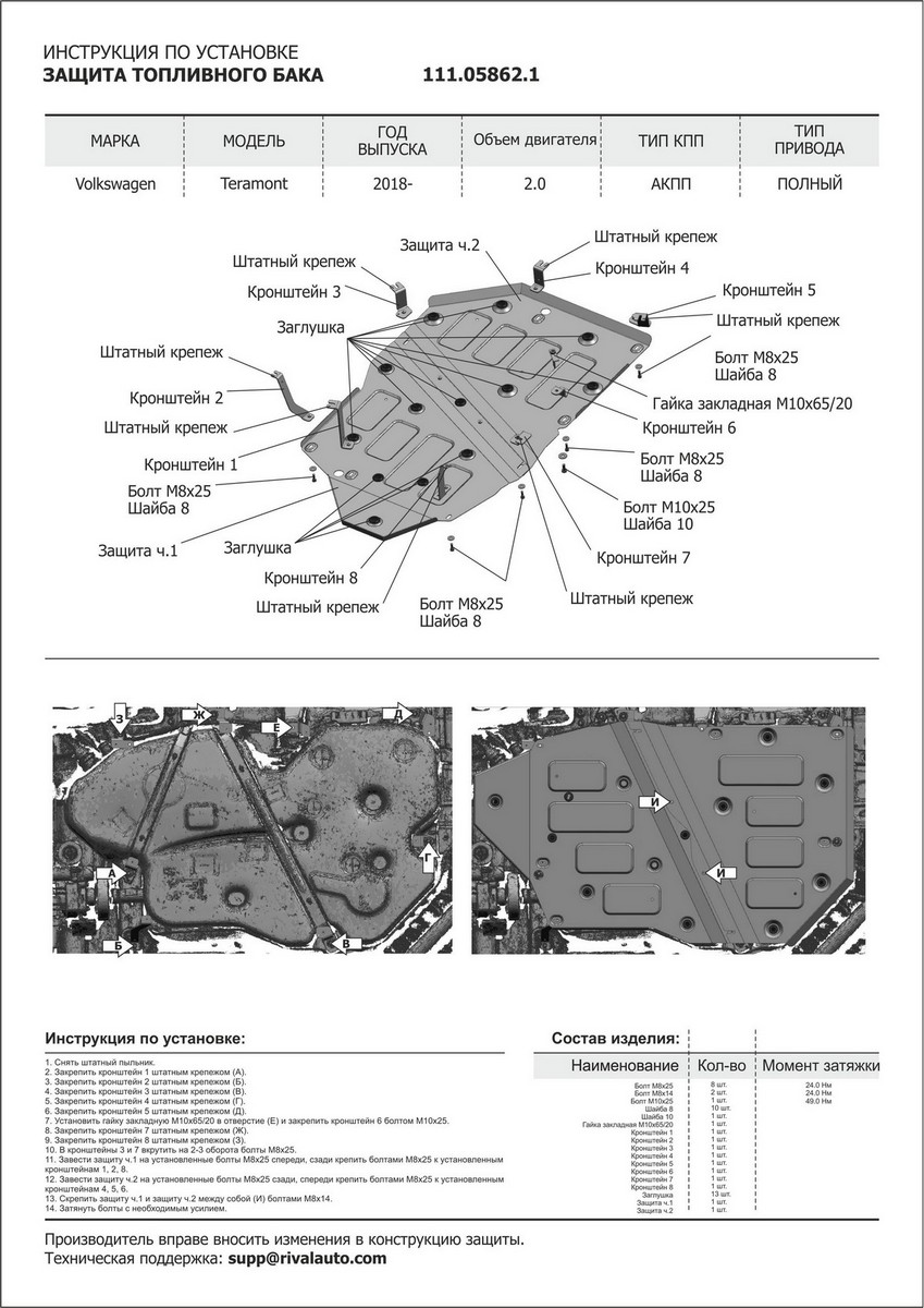В нашем интернет-магазине можно купить Защиту топливного бака АвтоБРОНЯ для Volkswagen Teramont 4WD 2018-н.в.