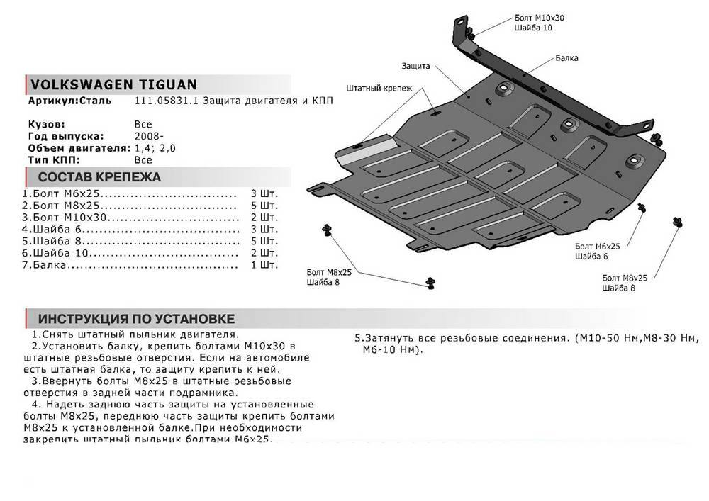 Обращаем ваше внимание, на тот факт, что защита имеет форму, соответствующую модели данного автомобиля. Наличие глубокого штампа и лючков для смены фильтров/масла предусмотрено не на всех защитах. Фото служит для визуального восприятия товара.