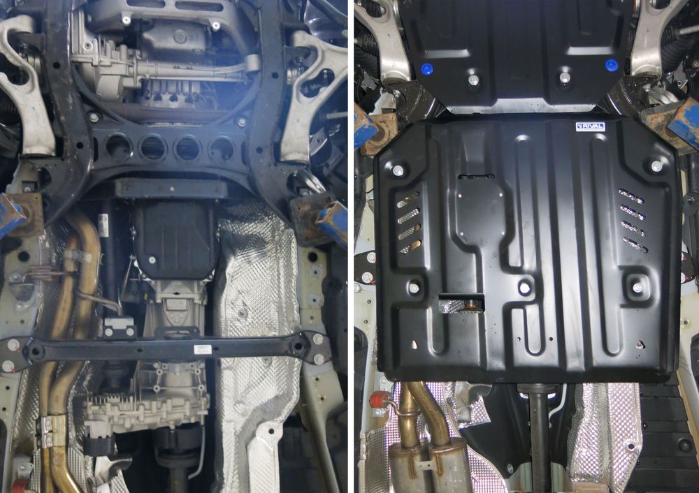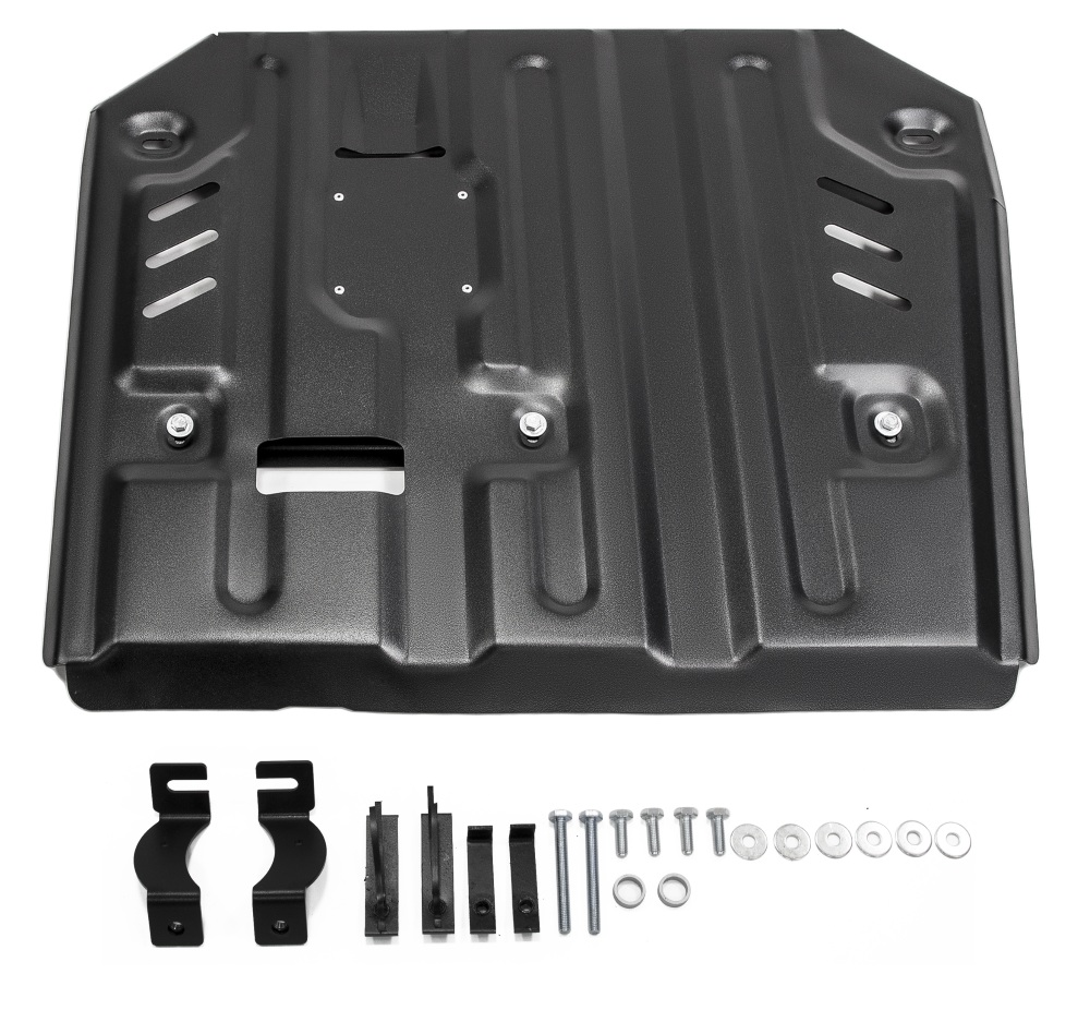 Обращаем ваше внимание, на тот факт, что защита имеет форму, соответствующую модели данного автомобиля. Наличие глубокого штампа и лючков для смены фильтров/масла предусмотрено не на всех защитах. Фото служит для визуального восприятия товара.