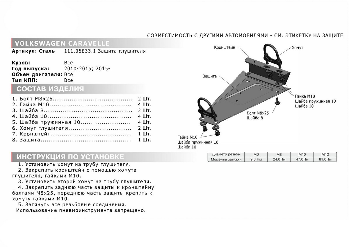 В нашем интернет-магазине можно купить Защиту глушителя Автоброня для Volkswagen Transporter 2003-2015