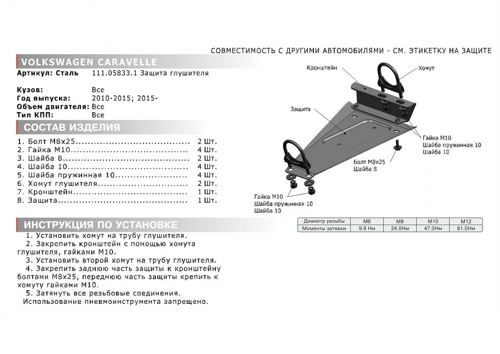 Обращаем ваше внимание, на тот факт, что защита имеет форму, соответствующую модели данного автомобиля. Наличие глубокого штампа и лючков для смены фильтров/масла предусмотрено не на всех защитах. Фото служит для визуального восприятия товара.